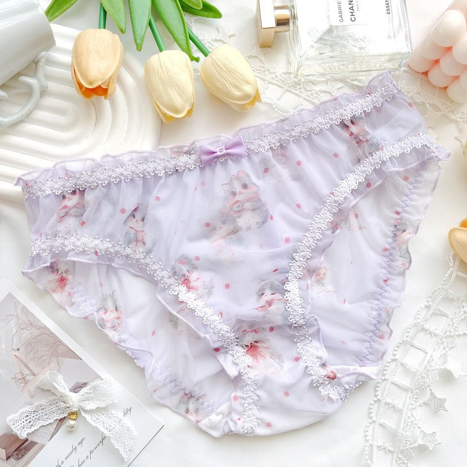 QS Cartoon Cat Bow See-through Briefs (4 Packs)